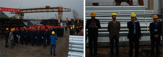 為落實集團(tuán)總公司《2014年安全生產(chǎn)工作要點》,豐富物產(chǎn)配送公司基層班組建設(shè),促進(jìn)一線職工綜合技能水平提升,以《吊裝作業(yè)規(guī)范手勢》為標(biāo)準(zhǔn),檢驗公司一線司吊作業(yè)人員執(zhí)行國家規(guī)范手勢、司吊作業(yè)操作規(guī)程的實際效果,保證全年安全控制目標(biāo)的實現(xiàn)。物產(chǎn)配送公司在前期宣傳動員、學(xué)習(xí)培訓(xùn)、實戰(zhàn)演練的基礎(chǔ)上,于2014年5月17日上午,舉行職工勞動技能比武大賽。集團(tuán)總公司黨委書記白家林、集團(tuán)黨群工作部部長趙宗青、安全環(huán)保部干事劉軍蒞臨現(xiàn)場指導(dǎo)。