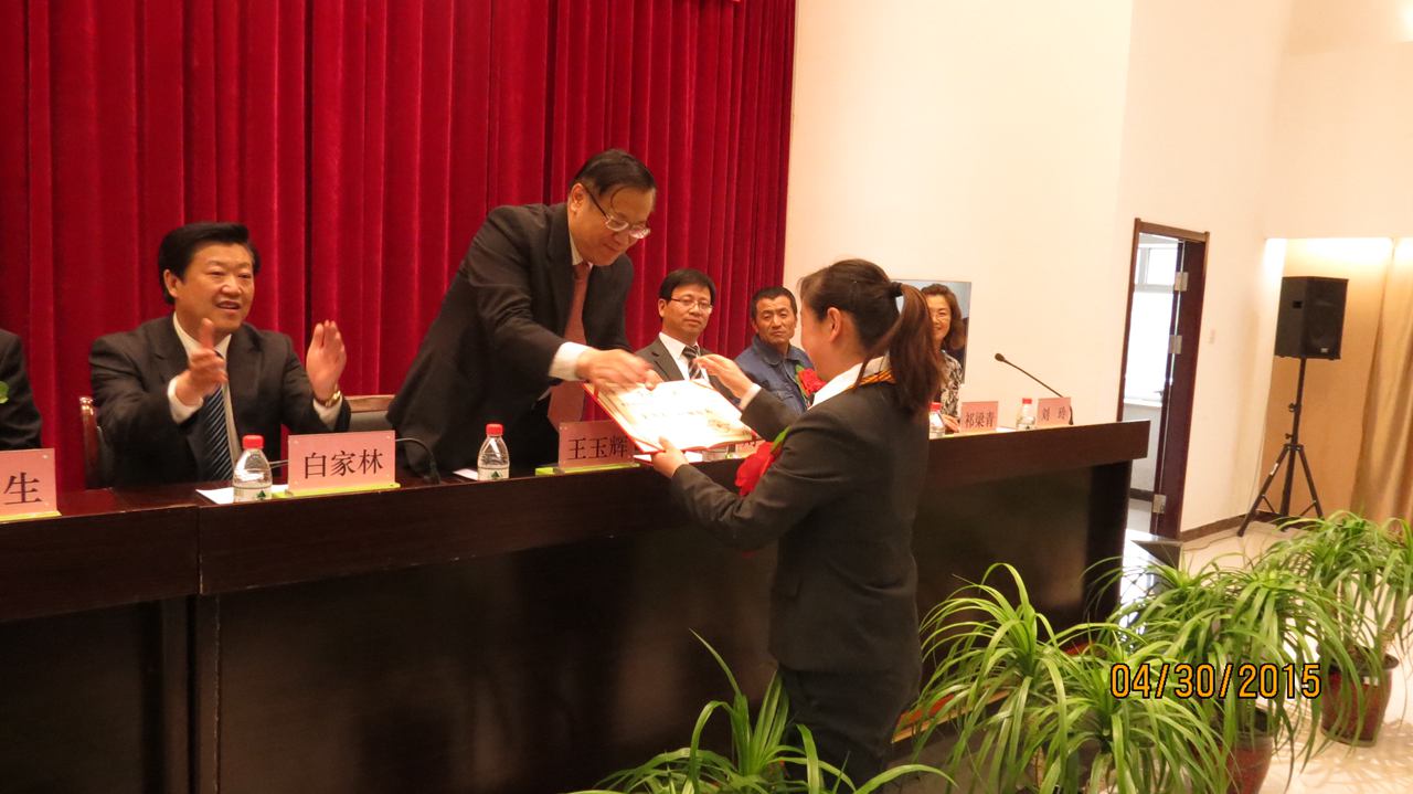 集團(tuán)總經(jīng)理王玉輝首先為榮獲"全國五一巾幗標(biāo)兵"榮譽(yù)稱號的青海物產(chǎn)汽車貿(mào)易有限公司銷售總監(jiān)劉少俠頒發(fā)了榮譽(yù)證書。