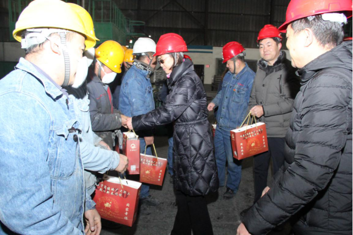 (工投公司訊 陳倫/文?劉燕?李朝暉/攝)"萬家騰笑語、四海慶新春"。在全國喜迎新年的美好時刻,2020年1月24日農(nóng)歷除夕,集團(tuán)黨委副書記、總經(jīng)理劉玲同志,集團(tuán)群團(tuán)工作部負(fù)責(zé)人一行,在公司黨政班子的陪同下,深入車間班組,為堅守在生產(chǎn)一線的干部職工送上節(jié)日的問候和精美的慰問品。