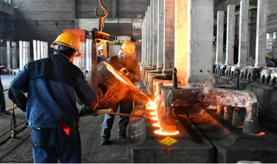 鏡頭一:陽極組裝車間"磷生鐵澆筑"比賽現(xiàn)場,參賽選手在指揮員的指令下,天車工密切配合,將赤紅的磷鐵水均勻澆筑在炭碗內(nèi)側(cè),整個過程"有條不紊、一氣呵成"。