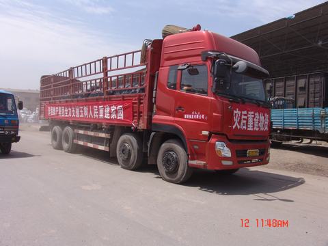 6月12日上午,由青海朝陽物流公司組織的首批五十輛裝滿災(zāi)后重建物資的重卡在省運(yùn)管局趙局長的一聲號(hào)令下從朝陽物流市場(chǎng)駛出,直奔玉樹災(zāi)區(qū),為災(zāi)后重建貢獻(xiàn)力量。