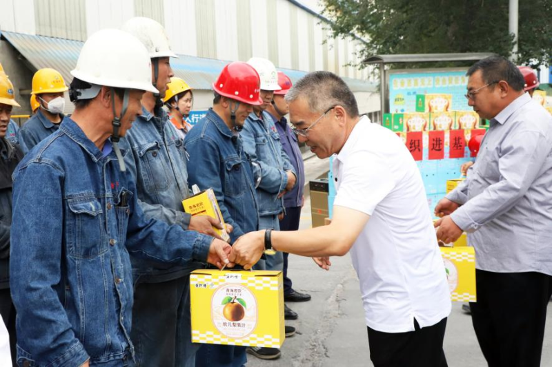 夏日送清涼,點(diǎn)滴沁人心。8月14日,青海省總工會(huì)紀(jì)檢監(jiān)察組組長(zhǎng)祁維正,省總工會(huì)二級(jí)巡視員張文輝等一行3人蒞臨青海物產(chǎn)工業(yè)投資有限公司開展“夏送清涼”慰問(wèn)活動(dòng),為夏日高溫下的一線職工送去組織關(guān)懷。集團(tuán)副總經(jīng)理、工會(huì)主席張?jiān)手业认嚓P(guān)人員陪同。