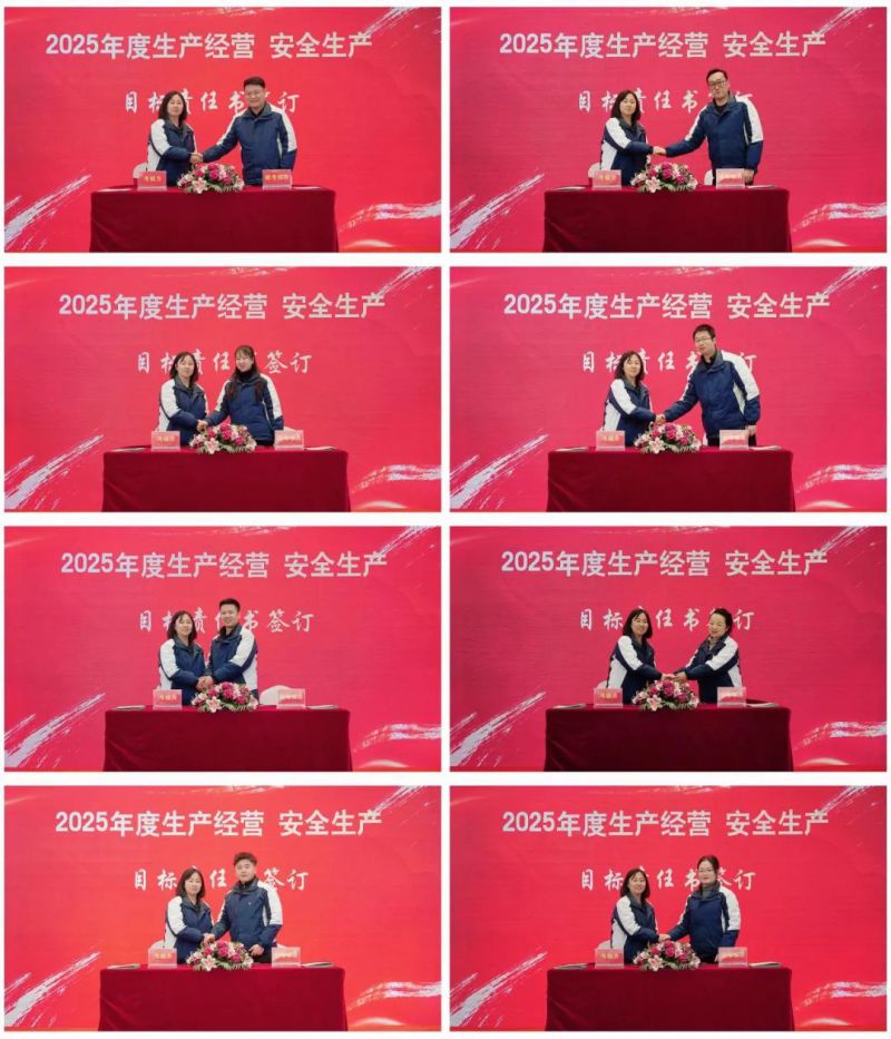 表彰之后,公司黨支部書(shū)記、董事長(zhǎng)、總經(jīng)理杜慶華同志分別與公司各部門(mén)負(fù)責(zé)人簽訂2025年度生產(chǎn)經(jīng)營(yíng)和安全生產(chǎn)工作目標(biāo)責(zé)任書(shū)。