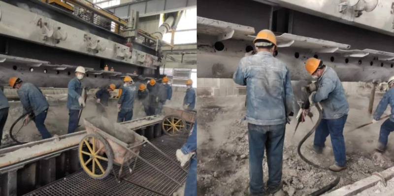電解槽大修如同外科手術(shù),需在有限停槽期內(nèi)完成數(shù)個(gè)部件的拆解、檢測與更換。延誤一天,意味著效益的損失。為搶進(jìn)度,電解車間將人員分成四班倒,可實(shí)際干起來,所有人都不約而同選擇了“連軸轉(zhuǎn)”。技術(shù)員小王剛下白班,見夜班人手緊張,抓起手套又鉆進(jìn)了槽底:“早一天啟動,就能多增加1噸多的鋁液!”槽頂排風(fēng)機(jī)的嗡鳴聲中,安全員老周扯著嗓門喊:“防護(hù)面罩戴緊!粉塵吸進(jìn)肺里要命!”他手里的強(qiáng)光手電掃過槽底,光束里翻騰的塵埃像一場無聲的雪暴。十幾米長的電解槽如同被解剖的巨獸,槽殼敞露,陰極鋼棒上斑駁的電解質(zhì)結(jié)痂仿佛鱗片,記錄著它連續(xù)運(yùn)轉(zhuǎn)10多年的疲憊。這是大修的關(guān)鍵戰(zhàn)役—— 7天內(nèi),必須讓電解槽“復(fù)活”。