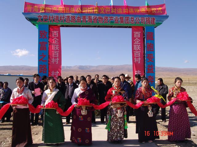 交接儀式上,集團(tuán)公司總經(jīng)理王玉輝、共和縣人大常委會(huì)主任尕瑪才讓為元者村黨員活動(dòng)室、科普文化室、醫(yī)療衛(wèi)生室揭牌之后,與黨委書記白家林、紀(jì)委書記王仁芬、共和縣委常委、組織部長(zhǎng)官卻南見等領(lǐng)導(dǎo)為共和縣黑馬河鄉(xiāng)文巴村進(jìn)村道路通車剪彩。集團(tuán)公司黨委書記白家林代表省物產(chǎn)集團(tuán)向共和縣江西溝鄉(xiāng)提前捐送元者村游牧民定居點(diǎn)工程配套資金100,000元。集團(tuán)公司紀(jì)委書記王仁芬、共和縣委常委、組織部長(zhǎng)官卻南見、江西溝鄉(xiāng)元者村村長(zhǎng)、文巴村村長(zhǎng)分別代表捐建方、受捐方致辭發(fā)言。至此,青海物產(chǎn)集團(tuán)在"百企聯(lián)百村"活動(dòng)中擬投入的1,455,500元,已到位1,255,500元。剩余的200,000元游牧民定居點(diǎn)工程建設(shè)項(xiàng)目捐款將根據(jù)工程進(jìn)度分期轉(zhuǎn)付。