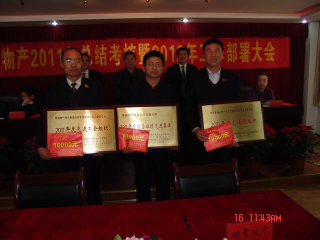 1月16日,集團(tuán)召開(kāi)2011年工作總結(jié)考核暨2012年工作部署大會(huì),省國(guó)資委領(lǐng)導(dǎo)蒞臨大會(huì)、集團(tuán)領(lǐng)導(dǎo)、各公司領(lǐng)導(dǎo)班子、總部全體員工及2011年度先進(jìn)個(gè)人參加了會(huì)議。集團(tuán)總經(jīng)理王玉輝作了題為《奮楫圖治夯實(shí)基,敦行致遠(yuǎn)續(xù)新篇,在"十二五"科學(xué)發(fā)展的大道上闊步前進(jìn)》的工作報(bào)告,黨委書記白家林作了題為《融入中心創(chuàng)先進(jìn),提升發(fā)展?fàn)幭蠕h,大力推進(jìn)青海物產(chǎn)集團(tuán)科學(xué)發(fā)展新跨越》的黨委工作報(bào)告.會(huì)上通報(bào)了集團(tuán)2011年完成省國(guó)資委下達(dá)的經(jīng)營(yíng)考核指標(biāo)情況及各公司主要工作成績(jī)和不足,對(duì)2012年工作任務(wù)及黨建工作進(jìn)行了安排部署。
