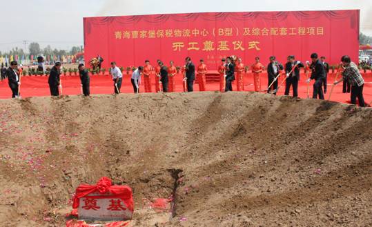 領(lǐng)導(dǎo)和嘉賓為青海曹家堡保稅物流中心(B型)及綜合配套工程項(xiàng)目奠基