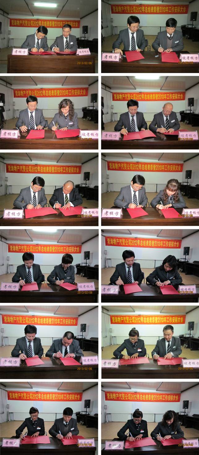 最后,公司總經(jīng)理與各部門簽訂了《2013年度生產(chǎn)經(jīng)營目標責任書》,支部書記與黨員、非黨員部門負責人簽訂了《廉政建設責任書》。